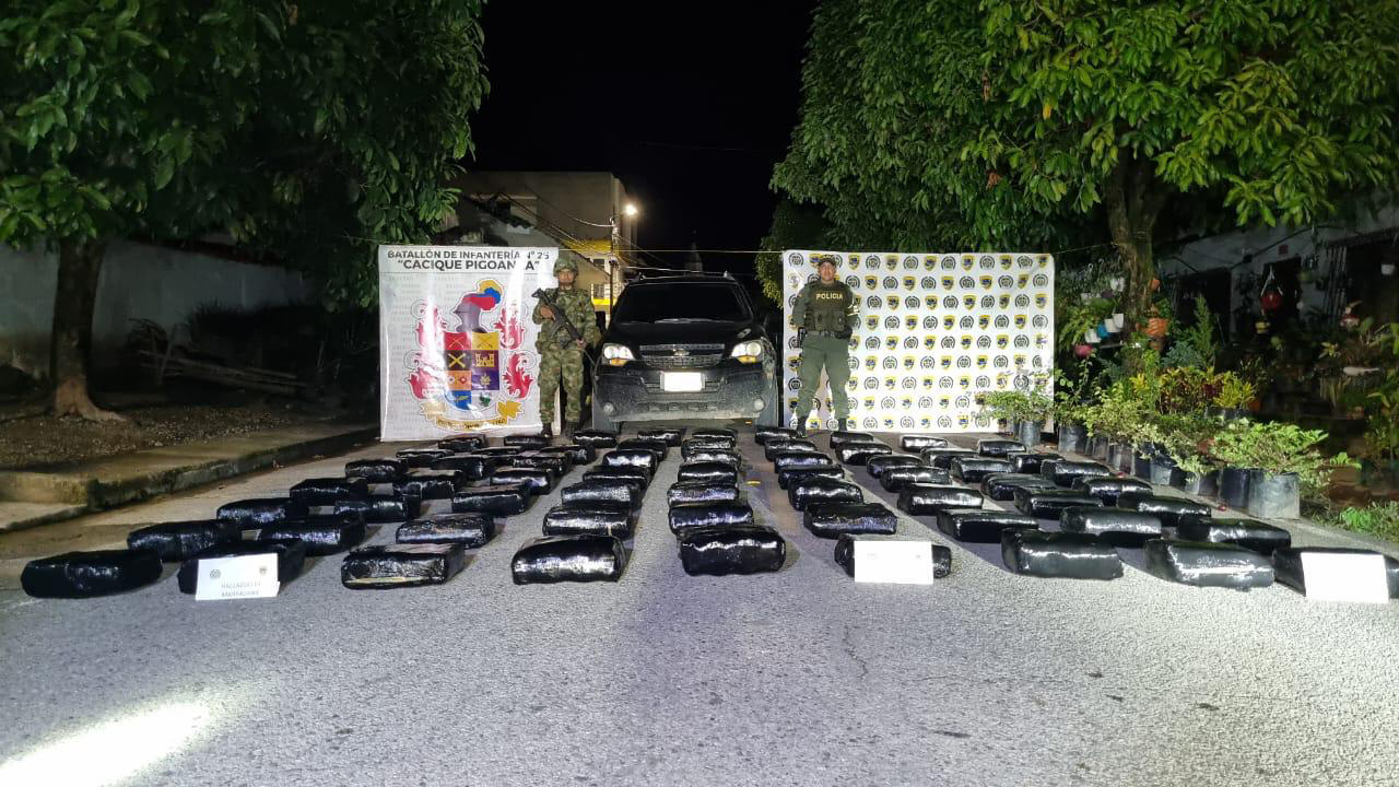 Fue así como por medio de un puesto de información y control efectuado por la Seccional de Transito de Transporte y soldados de la Novena Brigada en la vía La Plata-Neiva, jurisdicción del municipio de Tesalia, lograron interceptar un vehículo tipo campero, en el cual fueron hallados 89 paquetes impermeabilizados en cita vinipel con 510 kilos de marihuana.